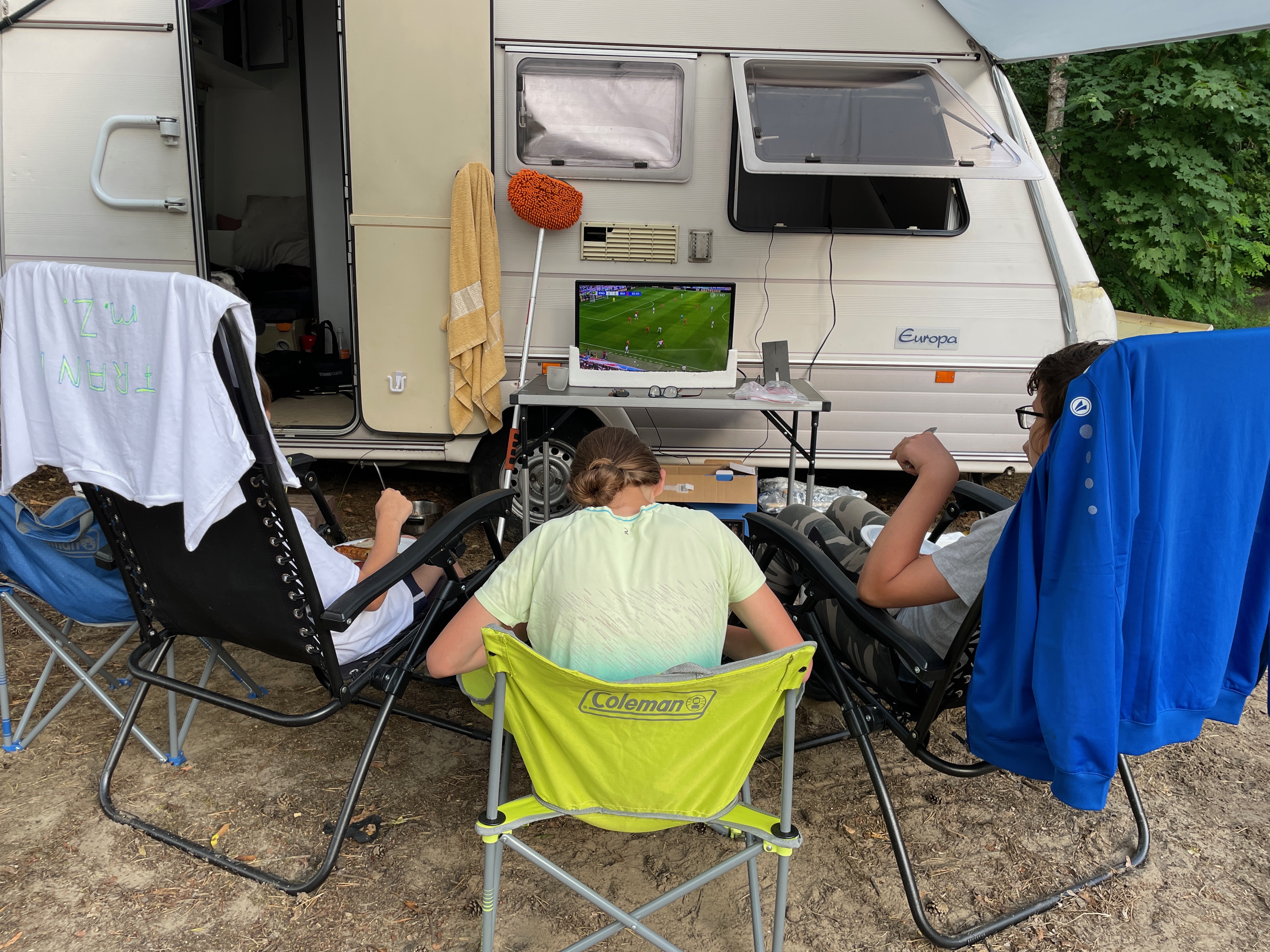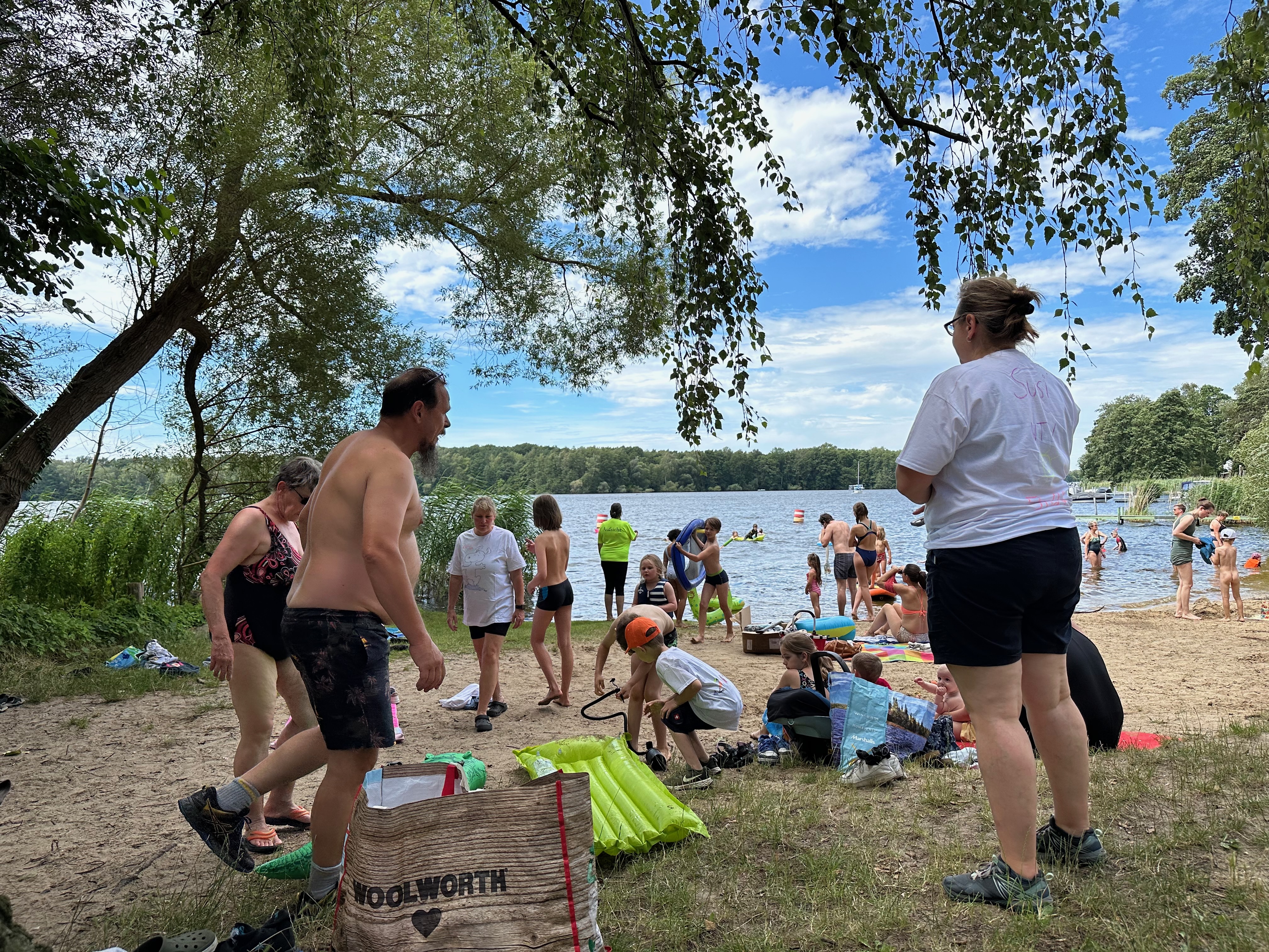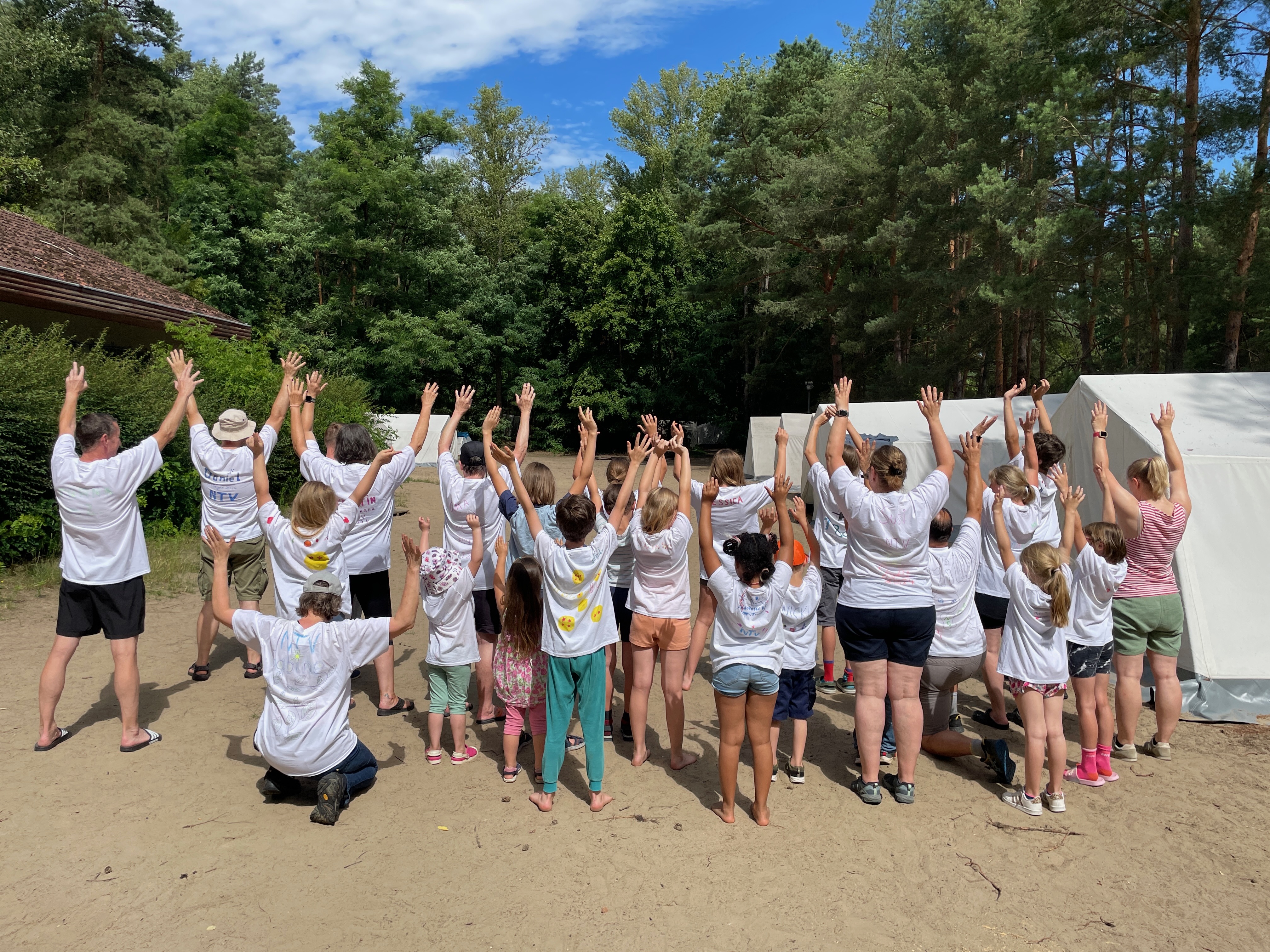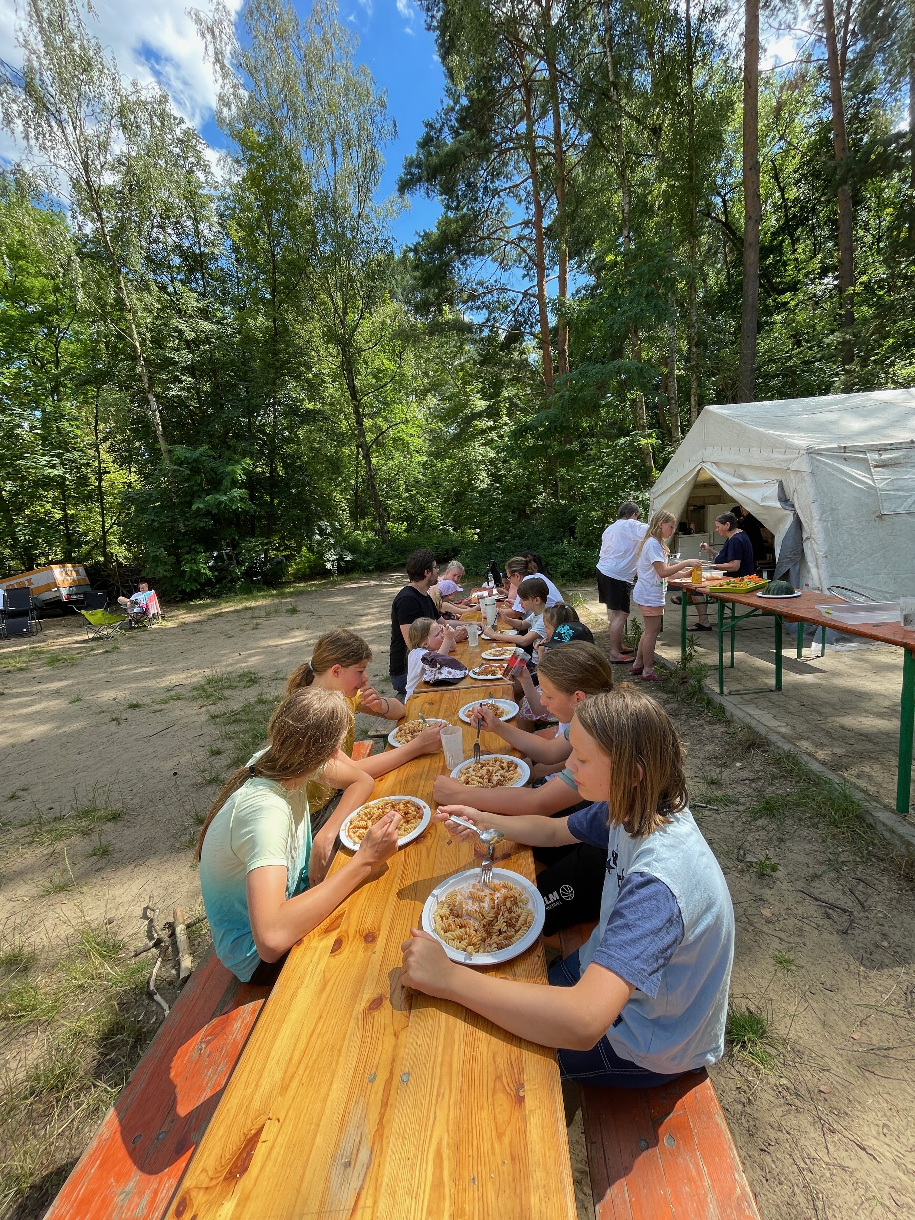 Nach einer ruhigen und erholsamen Nacht in den Zelten, gab es erst einmal ein stärkendes Frühstück. Ein großes Dankeschön geht hier an Sabine für den Brötchenservice. Am Samsatag Vormittag durfften dan alle Kinder und Betreuer ihrer Kreativität freien Lauf lassen. Es gab für jeden ein weißes T-Shirt und die passenden Stifte um dieses zu gestalten. So konnte jeder später eine schöne Erinnerung an dieses Wochenende mit nach Hause nehmen. Zum Mittag gab es später die von den Kindern geliebten Nudeln und Bolongnese bzw. Tomatensauce, die unsere Jugendwartinnen bereits zu Hause vorbereitet hatten. Nun gab es erst einmal eine kleine Mittagsruhe zur Verdauung, bevor es zum Baden and den Strand an der Havel ging. Unter der Aufsicht unserer Rettungsschwimmer konnten die Kinder hier im Wasser toben und am Strand ihre Burgen bauen. Den restlichen Nachmittag verbrachten die Kinder mit verschiedenen Spielen auf dem Zeltplatz. Am Abend wurde gemeinsam gegrillt und auch einige der Eltern schauten zu diesem Anlass bei uns vorbei. Großes Interesse gab es auch an den Spielen der Fußball-EM, die auf einen Fernseher vor dem Wohnwagen eines Betreuers verfolgt wurden. Zum Ausklang des Abends gab es noch ein Lagerfeuer mit am Stock gegrillten Marshmallows.