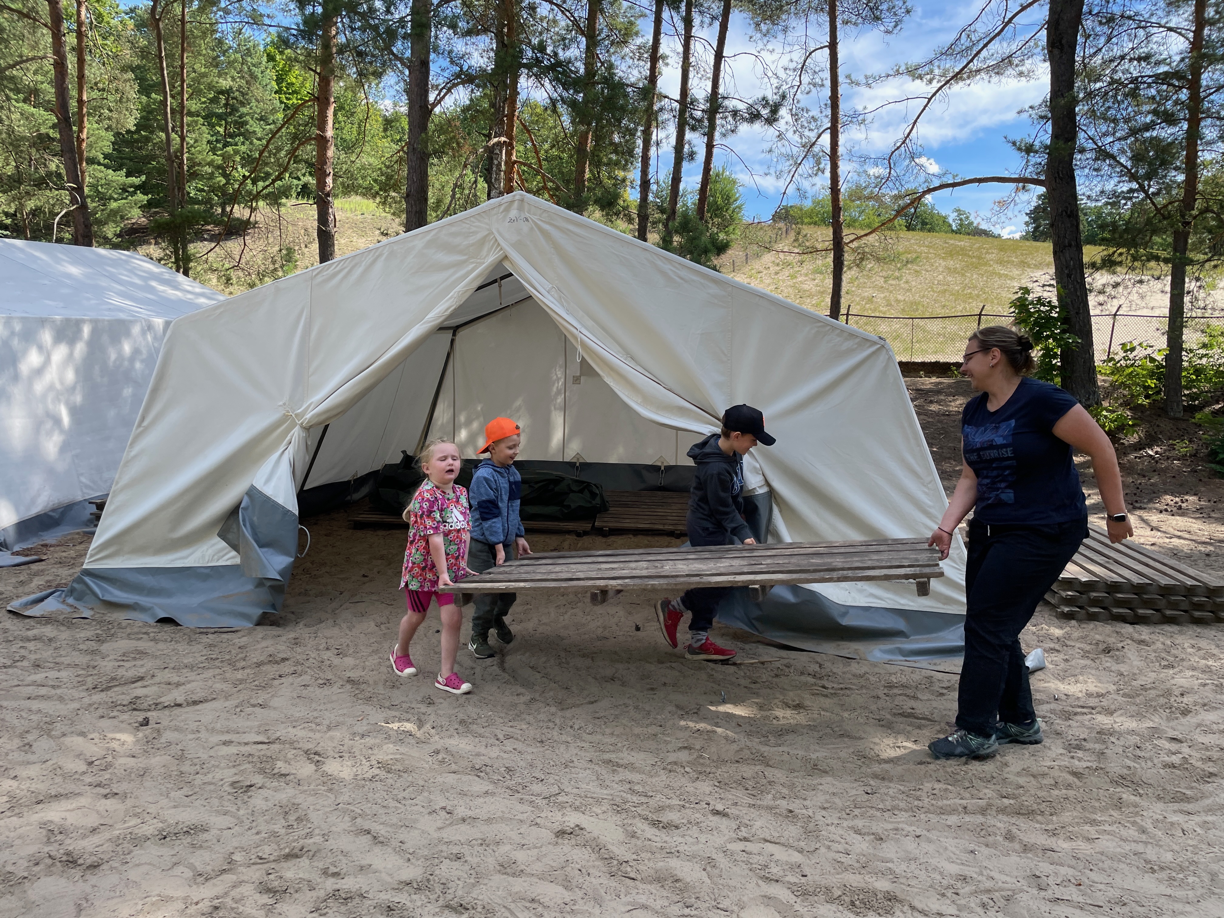 Am Sonntag ging es nach dem gemeinsammen Frühstück auch schon wieder ans aufräumen. Der Sand wurde aus den Schlafsäcken geschüttelt, Paletten und Planen wieder aufgestapelt. Hier packten alle fleißig mit an und wir waren pünktlich fertig als die ersten Eltern ankamen, um ihre Kinder wieder in Empfang zu nehmen. Dieses Wochenende hat sowohl den Kindern als auch den Betreuern viel Spaß gemacht und wir freuen uns alle auf das nächste Zeltlager 2025.